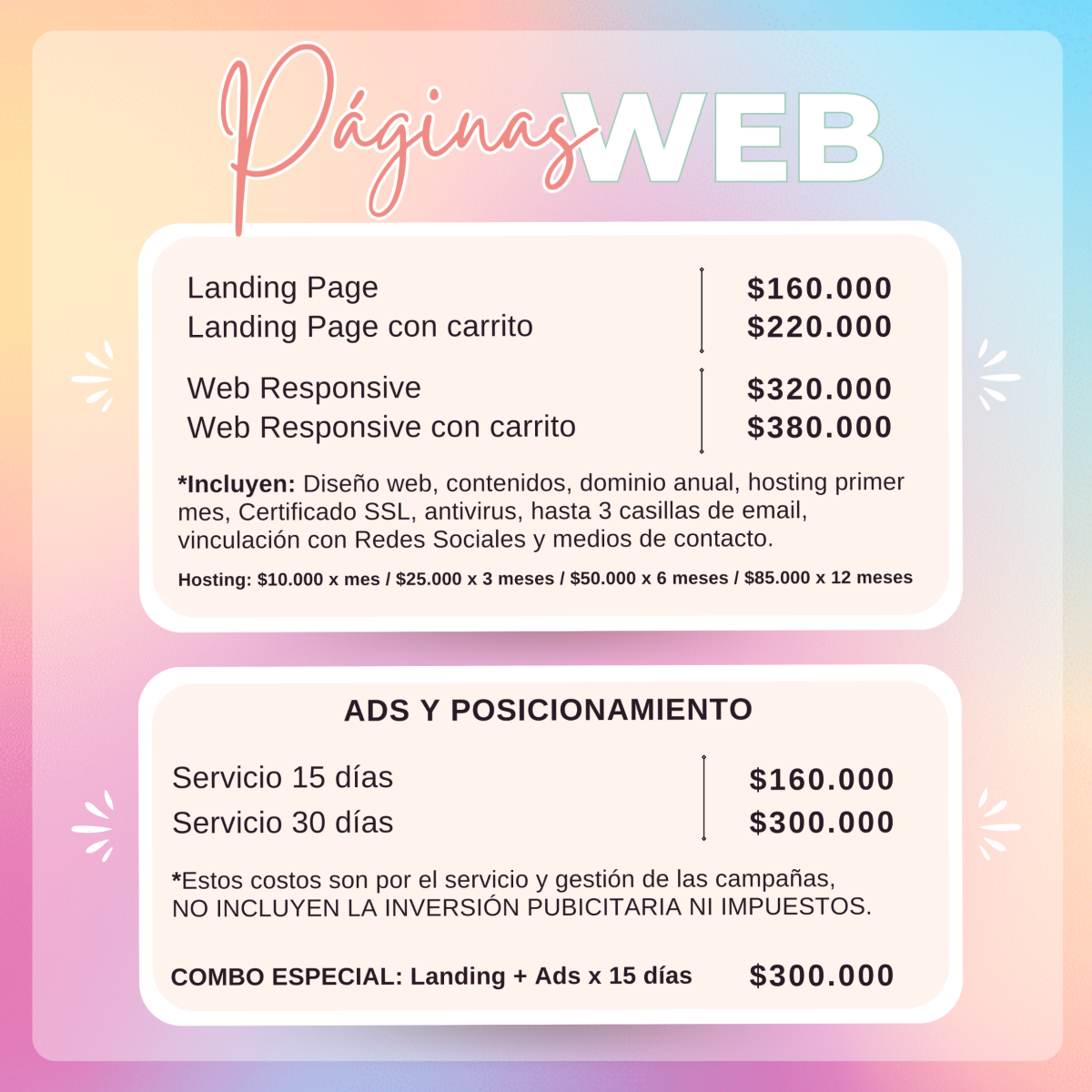 Una página web añade valor a nuestros productos y/o servicios, también nos ayuda a promocionar nuestros servicios y/o promociones a nuestros clientes, pero además nos ayuda a conseguir nuevos clientes. Te ofrecemos también el servicio de campañas de Ads y posicionamiento.