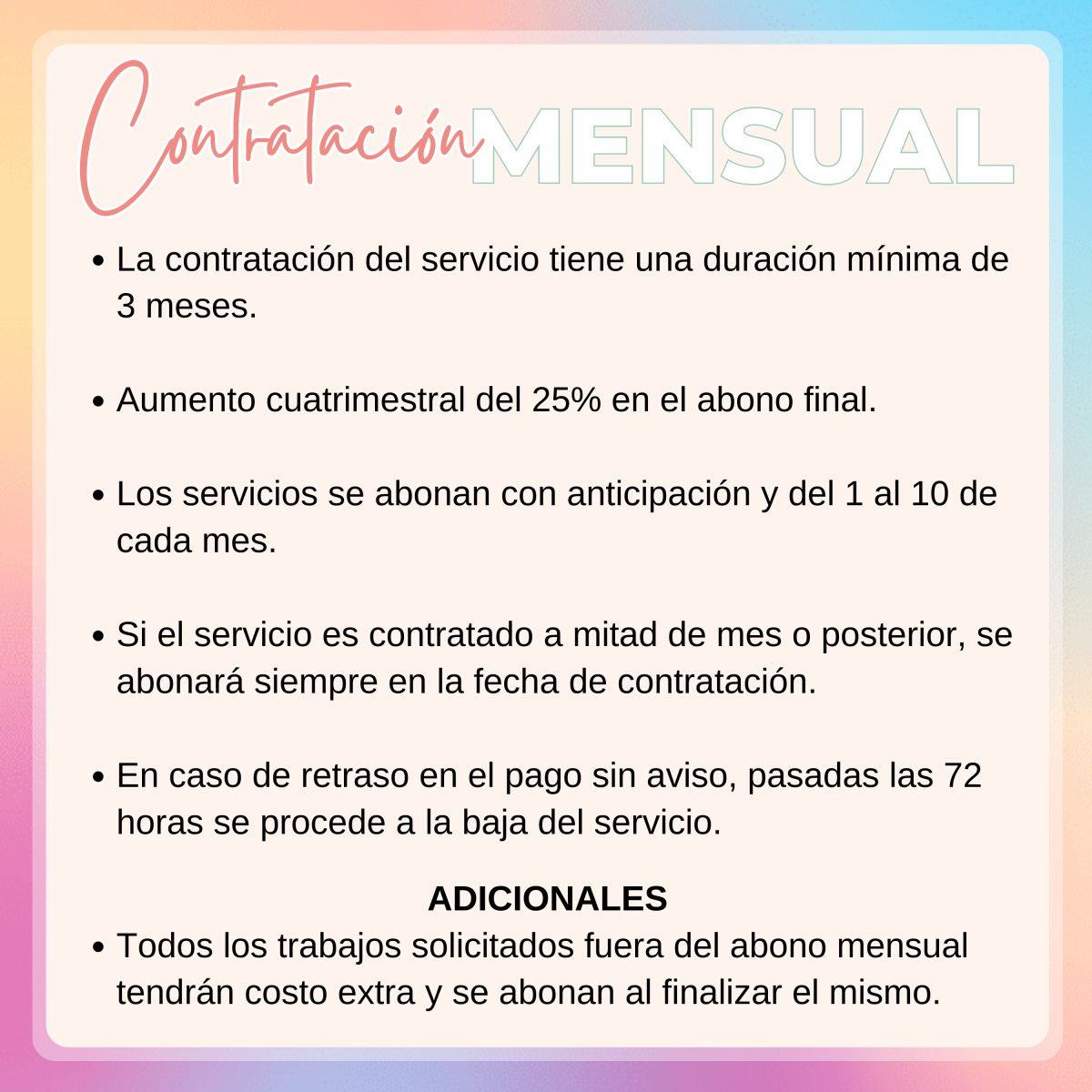 Estos son los términos y condiciones de contratación de nuestros servicios mensuales.